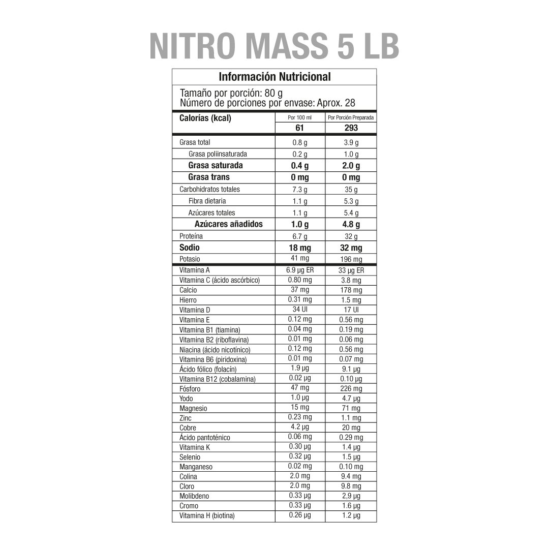 Cada porción preparada de NITRO MASS te aporta: